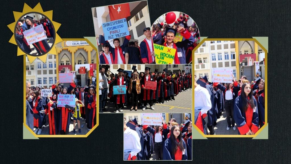 Okul idaremiz tarafından organize edilen ve mezun olan öğrencilerimizin ailelerinin de katıldığı muhteşem bir törenle son sınıf öğrencilerimiz lise öğrenimlerini bitirerek mezun oldular. Törende bir konuşma yapan okul müdürümüz Mehmet Metin, mezun olan öğrencilerimize hayatta başarılar diledi.