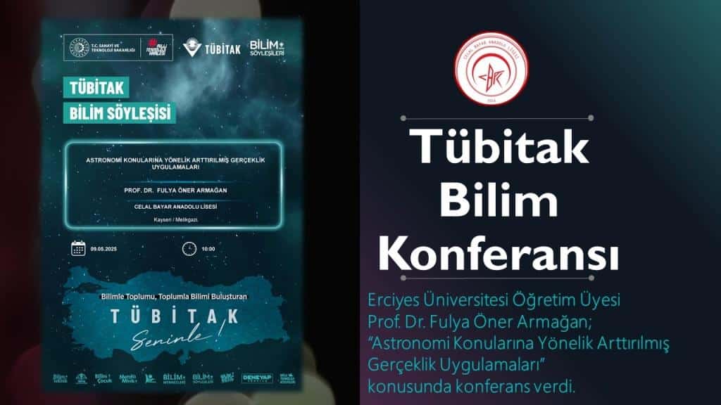 Erciyes Üniversitesi öğretim üyesi Prof. Dr. Fulya Öner Armağan’ın konuşmacı olarak katıldığı söyleşi, “Astronomi Konularına Yönelik Arttırılmış Gerçeklik Uygulamaları” başlığı altında gerçekleştirildi. Öğrencilerimizin bilimsel düşünme becerilerini geliştirmeyi amaçlayan etkinlikte, çağın gerekliliklerine uygun teknolojik uygulamalara dair güncel bilgiler paylaşıldı.